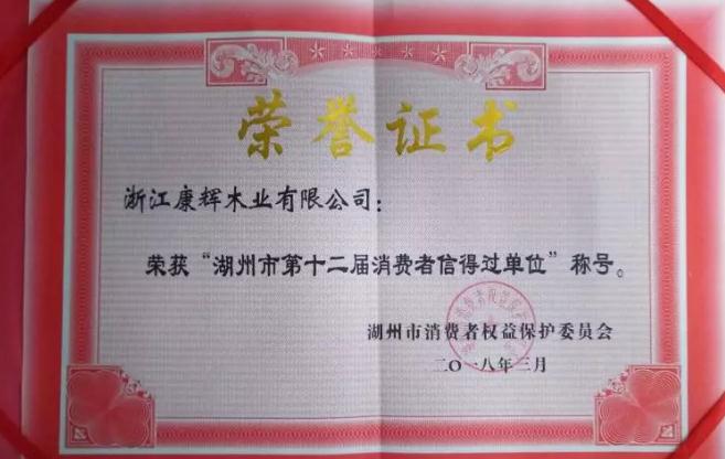 昨天是3月15日“國(guó)際消費(fèi)者權(quán)益日”,市消保委開(kāi)展“湖州市第十二屆消費(fèi)者信得過(guò)單位”評(píng)選活動(dòng),“浙江康輝木業(yè)有限公司”(康輝地板)榮獲“消費(fèi)者信得過(guò)單位”稱(chēng)號(hào)。消費(fèi)者信得過(guò)單位是一項(xiàng)社會(huì)公益性的榮譽(yù)稱(chēng)號(hào),康輝地板已經(jīng)連續(xù)多年被評(píng)為“消費(fèi)者信得過(guò)單位”,這不僅是對(duì)康輝生產(chǎn)及優(yōu)質(zhì)服務(wù)全面提升的一個(gè)肯定,更是對(duì)康輝地板今后的經(jīng)營(yíng)服務(wù)提出了更高的要求。