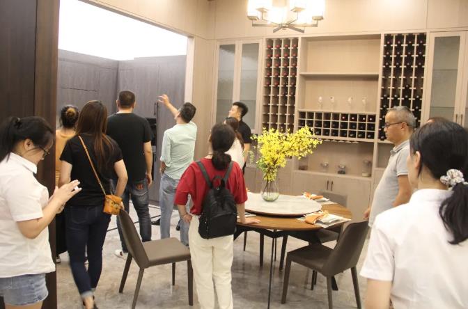 參觀過程中徐總向星杰裝飾的設計師們詳細介紹了康輝木業(yè)的發(fā)展歷程,就產品的生產工藝、藝術風格、美學表達和裝飾效果等進行了詳盡的闡釋。并帶設計師們參觀了康輝整裝產品的生產基地,現(xiàn)場觀摩康輝高品質產品的生產全過程。康輝木業(yè)的產品質感、對工序的嚴謹把控和對品質的高要求獲得了現(xiàn)場設計師們的高度認可。