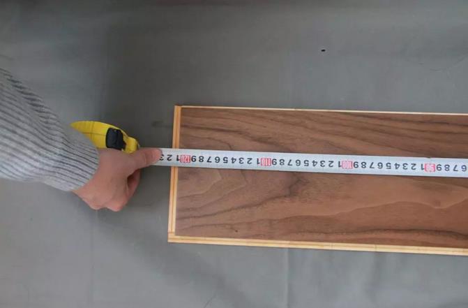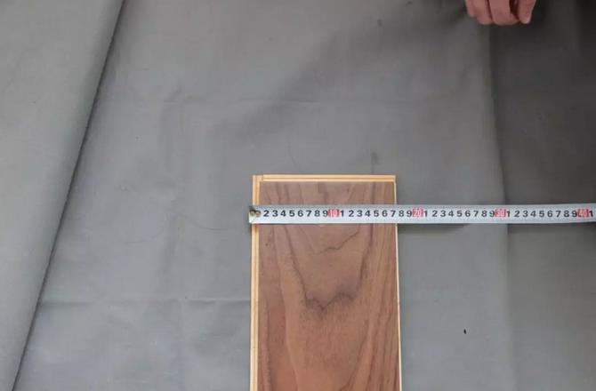 康輝黑胡桃新三層KH-DF-SP06的官方規(guī)格為1210*161*15。經(jīng)過評測人員的實際測量,這款地板長度、寬度和厚度的尺寸與標識規(guī)格沒有誤差,可見康輝地板對于產(chǎn)品尺寸的把控十分精確,可見地板制作工藝精良、成熟。