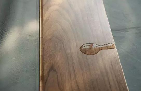 測評人員將水倒置于此款地板表面便凝結(jié)成了水珠,靜置30分鐘后,觀察水珠沒有出現(xiàn)滾動的現(xiàn)象,也未滲透到地板內(nèi)部,擦拭干凈后,地板完好如初無色差。可見康輝黑胡桃新三層KH-DF-SP06具有有很強防水性。康輝根據(jù)色彩效果采用適宜的油漆工藝,板面通透飽滿、光澤柔和,先進的封漆技術(shù)更加無需擔心滲水,消費者在購買后,打理起來將倍感輕松。