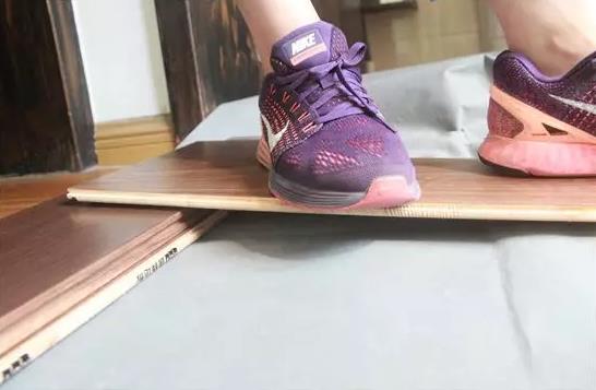 為測試此款地板的承重抗壓強度,女同事(體重55kg)站在被抬高的地板上,地板并沒有發(fā)生任何彎曲,可見康輝新三層實木地板KH-DF-SP06具有較強的抗變形性能。表層采用1.2mm的珍惜原木樹材,用具有高度穩(wěn)定性的櫸木單板為背板,桉木單板為平衡層,延續(xù)了多層實木地板層層縱橫疊壓的互鎖結(jié)構(gòu),實現(xiàn)了單板實木、雙重結(jié)構(gòu)、三重平衡保障,通過縱橫互鎖的力學結(jié)構(gòu),有效釋放木材內(nèi)應力,保證地板穩(wěn)定不變形,且每一層含水率均得到合理控制,讓地板的穩(wěn)定性更佳。